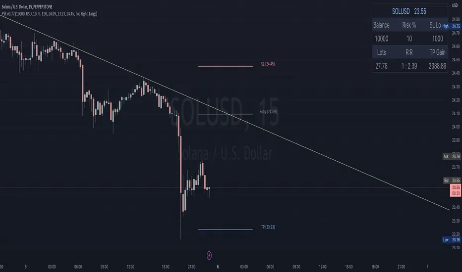 The position sizing tool is an indicator to help calculate in trading, such as loss and gain, lots size, and risk-reward ratio.