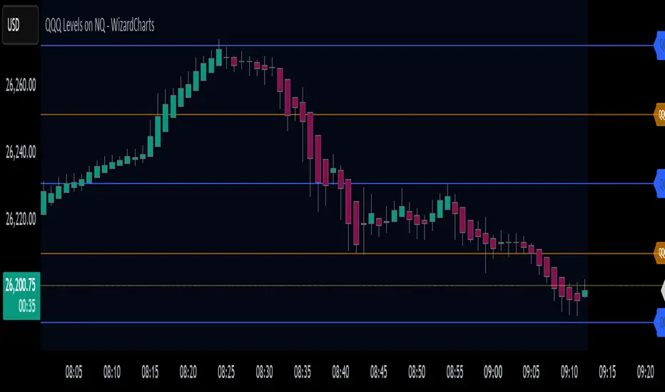 - Smart Scaling : Automatically converts QQQ levels to NQ/MNQ prices