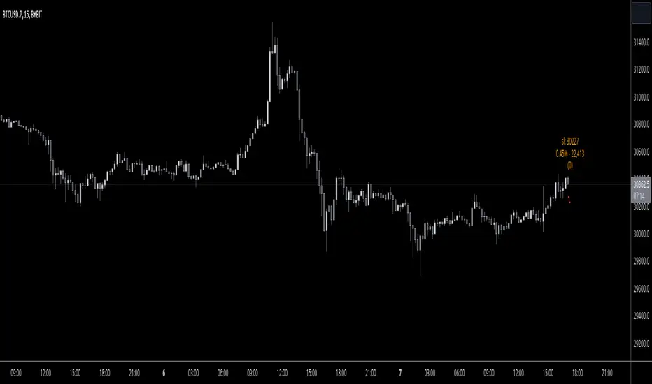 Displays Stop Loss Price, SL Distance Percent and Position Size overlayed in the chart and plots a stop loss line.