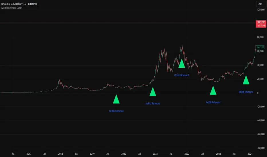Marks the McRib release dates from 2019-Current. Previous dates from Pre-2019 weren't clear enough to include accurate info. Goated Indicator. 67 😎
