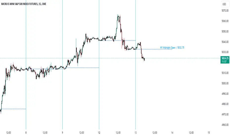 Dotted horinzotal line that indicates today's NY opening price, considering opening at 00 NY time