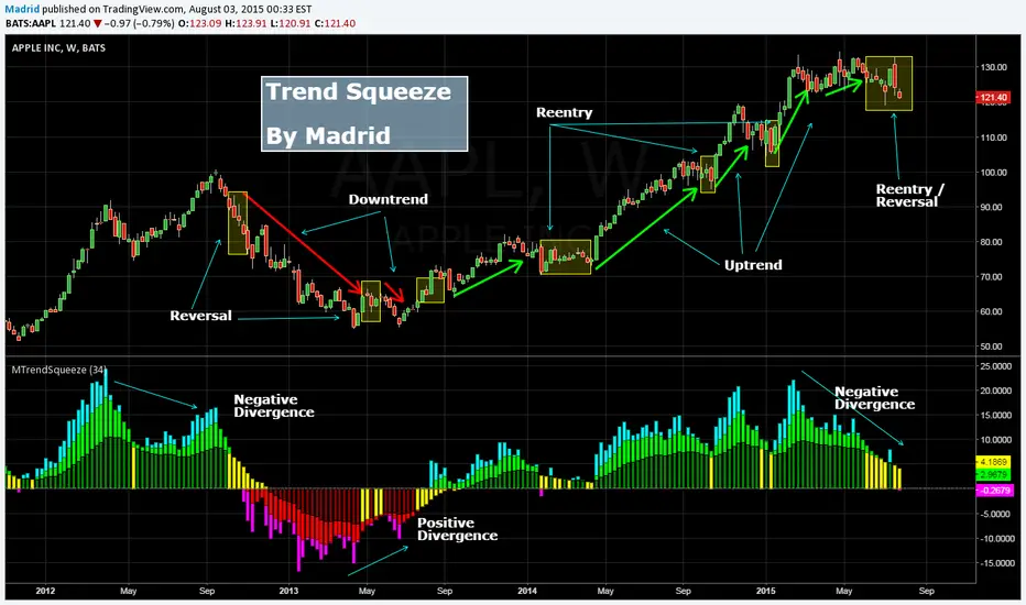 Madrid Trend SqueezeThis study spots the points that are most profitable in the trend with a code color and shape. This also shows trend divergences and possible reversal or reentry points