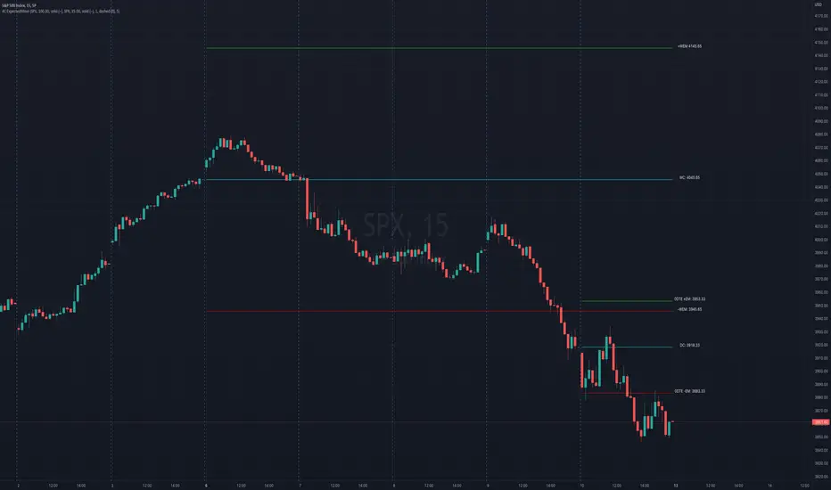 This indicator plots the calculated Expected Move for BOTH Weekly and Zero Dated Expiration (0DTE) Daily options, for a quick visual reference.