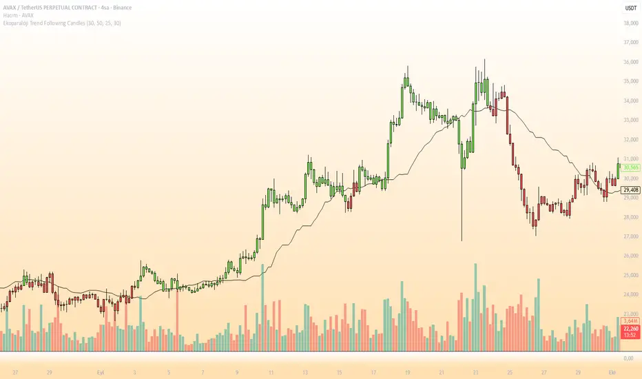 This indicator is a candle coloring system that helps you easily identify trend direction. Complex calculations run in the background, and you simply follow the candle colors to understand trend strength.