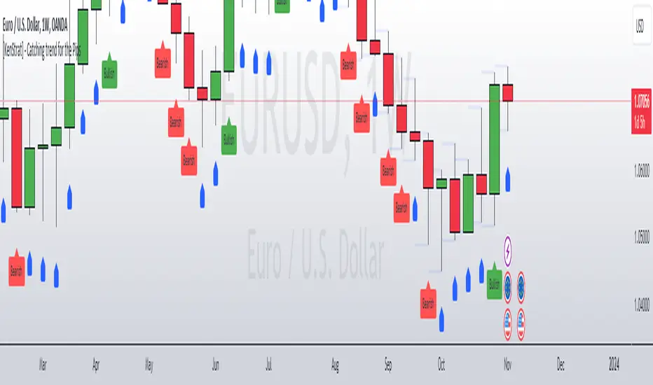 The "[KenStrat] - Catching trend for the Pips" indicator is designed to help traders identify potential trend reversal points and capture significant price movements, with a focus on both daily and weekly perspectives.