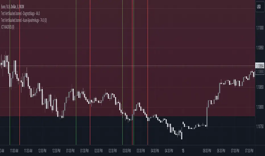 This Pine Script creates an indicator that draws vertical lines on a TradingView chart to mark specific time intervals during the day. It allows the user to see when certain predefined time periods start and end, using vertical lines of different colors. The script is designed to work with time frames aligned to the UTC-4 timezone.