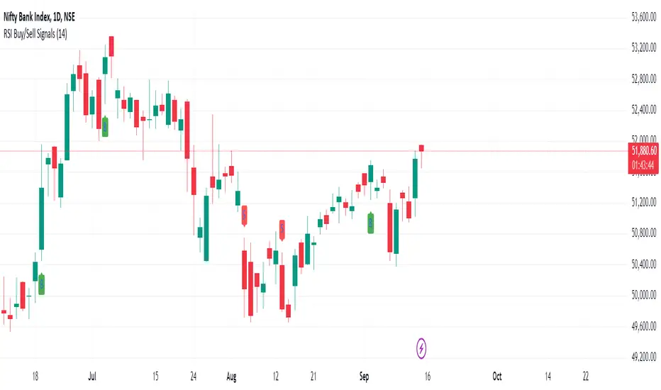 This Pine Script is designed to plot Buy and Sell signals based on the Relative Strength Index (RSI) for both 15-minute and hourly timeframes. It calculates the RSI values for the current 15-minute chart and requests the hourly RSI data for comparison. Buy signals are generated when the RSI crosses above 60 in either timeframe, while sell signals occur when the RSI crosses below 40. The script also plots visual markers on the chart, indicating buy signals with green labels below the price bars and sell signals with red labels above the price bars. Additionally, it allows for alert conditions, notifying the user when a buy or sell signal is triggered.