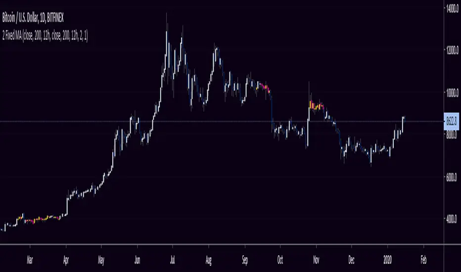 This is a version of my fixed MA script where 2 fixed MAs can be shown at once. Please see my "Fixed Moving Average" script for full explanation on what a fixed moving average is.