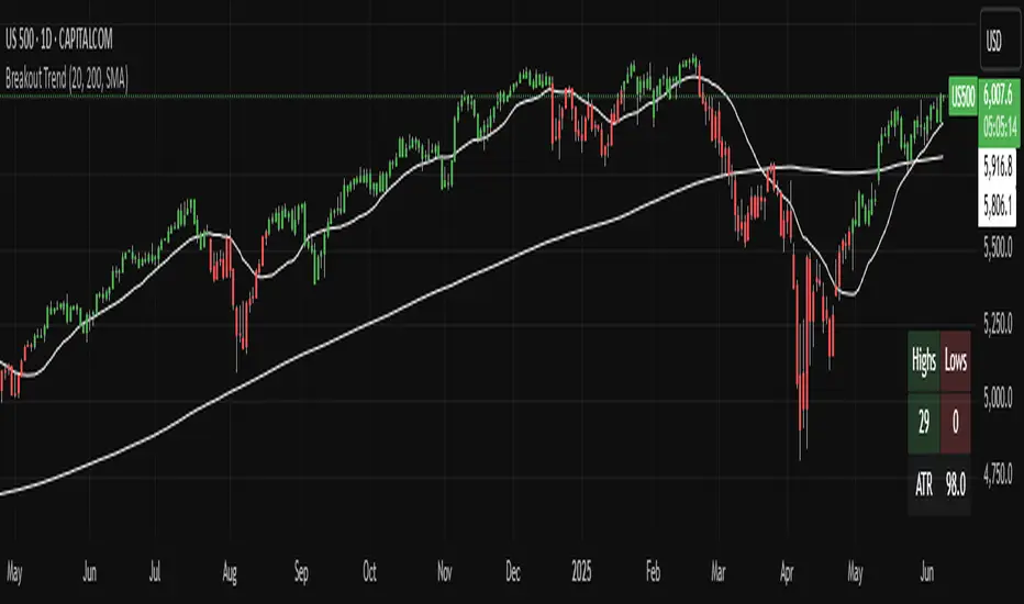 Yes, these are lagging indicators by design — and that’s the point. Instead of predicting every wiggle, the Breakout Trend waits for confirmation, offering higher signal quality and fewer whipsaws. When the price breaks above a recent high and sits above the long-term moving average, the trend is more likely to persist. That’s when this indicator shines.