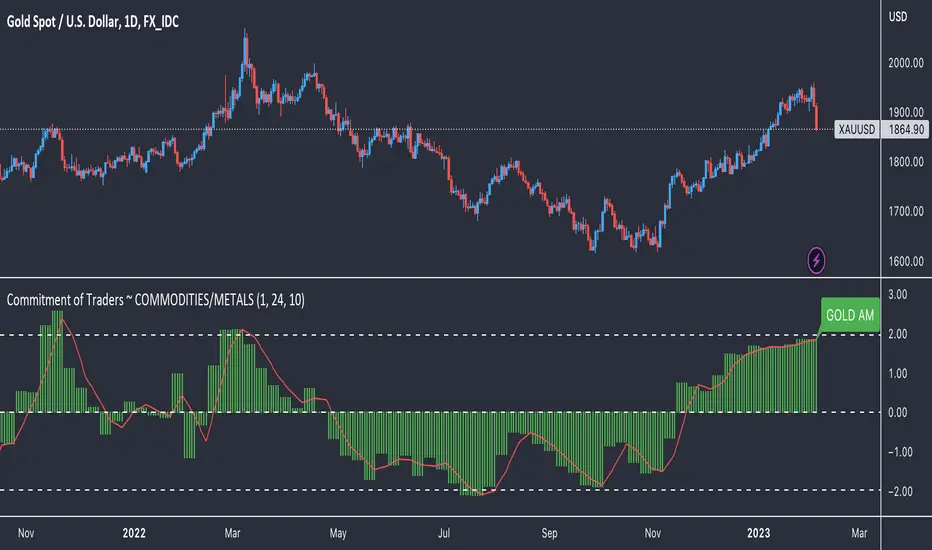 My intention was to create 1 script for the Commitment of Traders report but I wasn't not aware there is a limit on how many instrument calls can be made in PineScript so I had no choice but to divide the script into instrument categories. So far I have created 4 of them: Forex, Treasuries, Indexes & Metals/ Commodities which is the one presented here. If you are interested in the other ones, feel free to do a search.