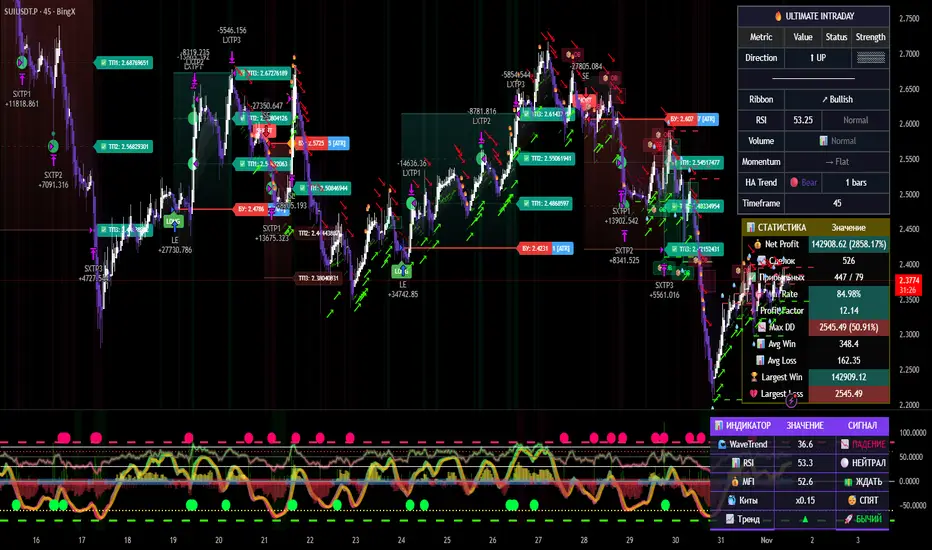 This indicator gives signals to long or short, and also has custom notifications in telegram via a webhook, you will know the information at the entrance, when taking takes, as well as when closing a position. The indicator is suitable for a 15min - 4h timeframe.