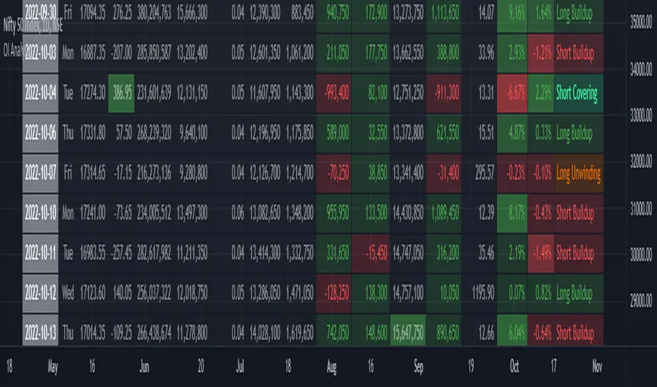 Calculates the Combined OI and identifies the OI Buildup based on the Price Change and color codes the info for easy reading