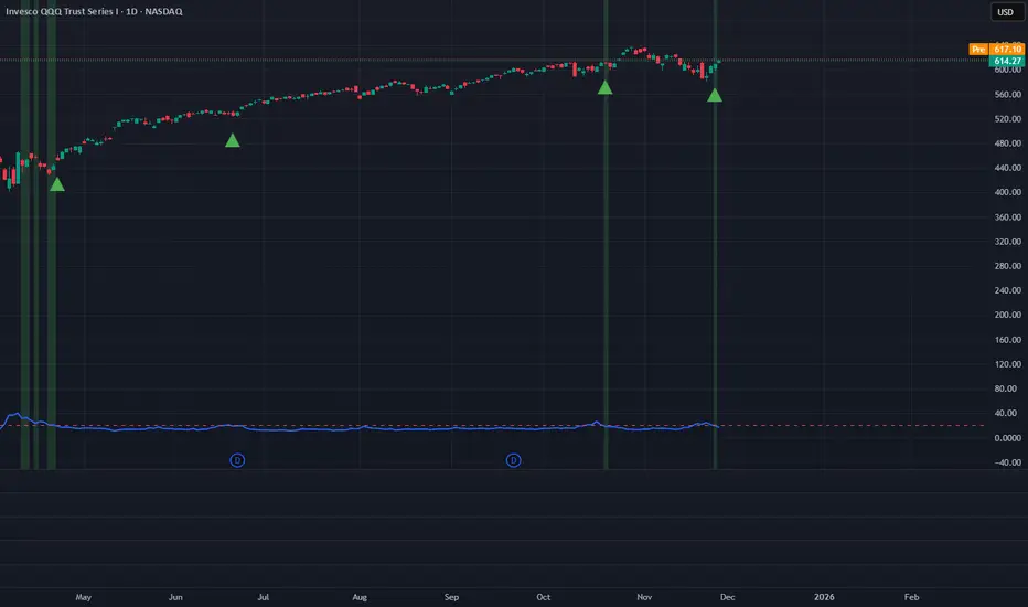Green triangle. If TDEX > 20 puts expensive and market expects risk event. When TDEX falls below 20 then risk event cancelled or not so scary anymore. Green trianlge signals.