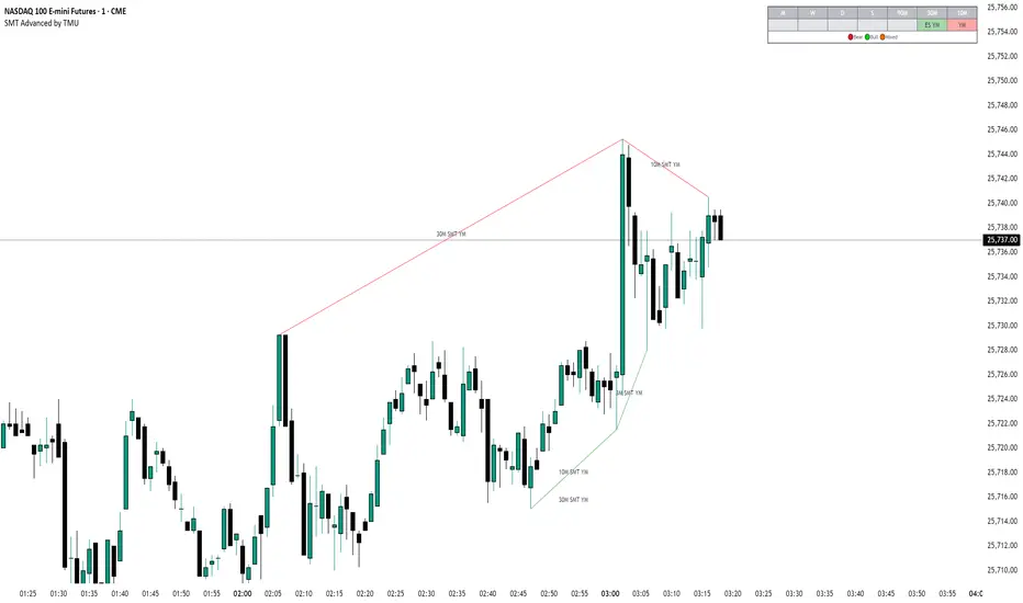 Major market moves often align with Key Time Cycle SMTs. This indicator detects SMTs on lower timeframes and higher timeframes and identify Key Market Reversals in real-time.