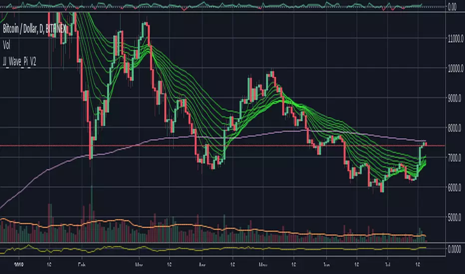 The Moving Average Wave and Pi Line. A little boredom led me to brighten the colors a bit and try out EMA instead of SMA, which I think produces a better wave. Enjoy