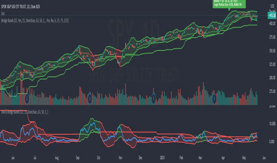 This is an implementation of the Bridge Bands [joecat808] applied to the VixFix. Idea would be that when VixFix is above trend you'd want to be risk off, below trend you'd want to be risk on.