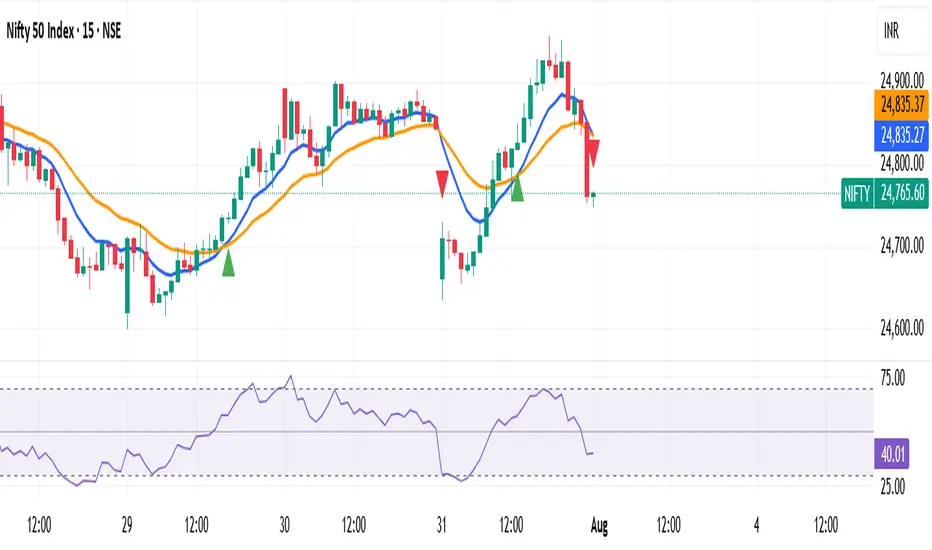 The 9 & 21 EMA Crossover indicator is a simple yet powerful trend-following tool designed for traders of all levels. This script plots two widely used exponential moving averages — a fast 9 EMA and a slower 21 EMA — directly on your chart.
