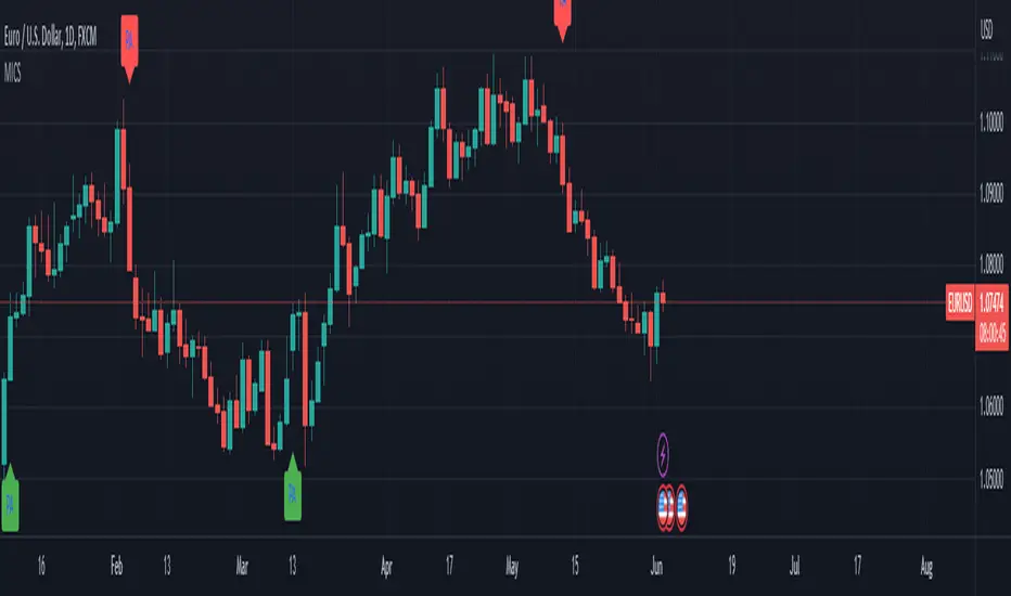 When the 'Price Action Long' or 'Price Action Short' options are enabled, the MICS will display green or red arrows respectively, indicating potential bullish or bearish signals.