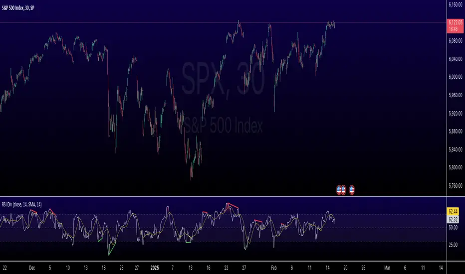 Script highlights the divergences in RSI worth taking notice of. By comparing current envionment to relative sample we can see more than