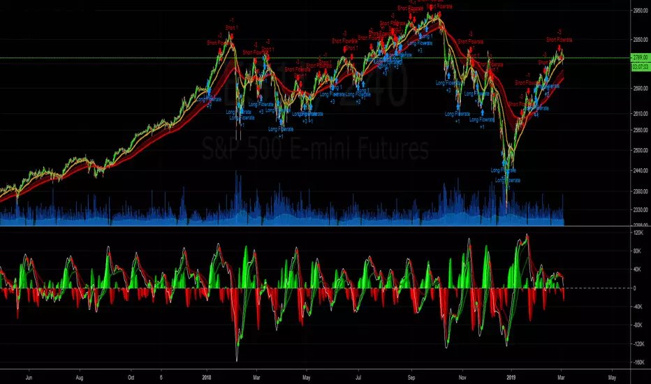 Strategy 1) Flowrate Channel crosses 0 (indication of official change in sentiment. >0 correlates to net volume inflow into the market, while <0 signifies a net volume outflow)