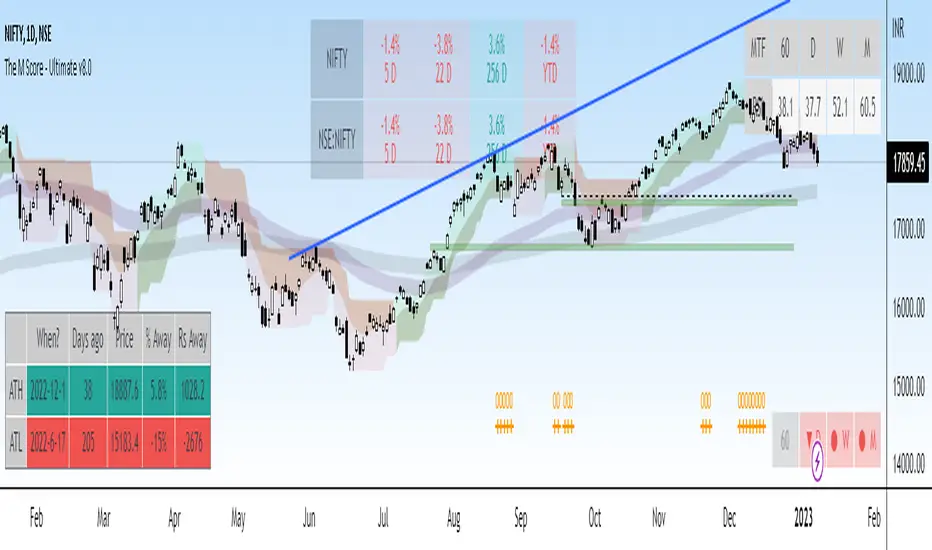 4. Top Right table - This indicator plots a table off to the right of the chart to help with determining timeframe continuity. A great edge is only taking trades where full timeframe continuity is in place (i.e. if you are going long, make sure other timeframes are also green).