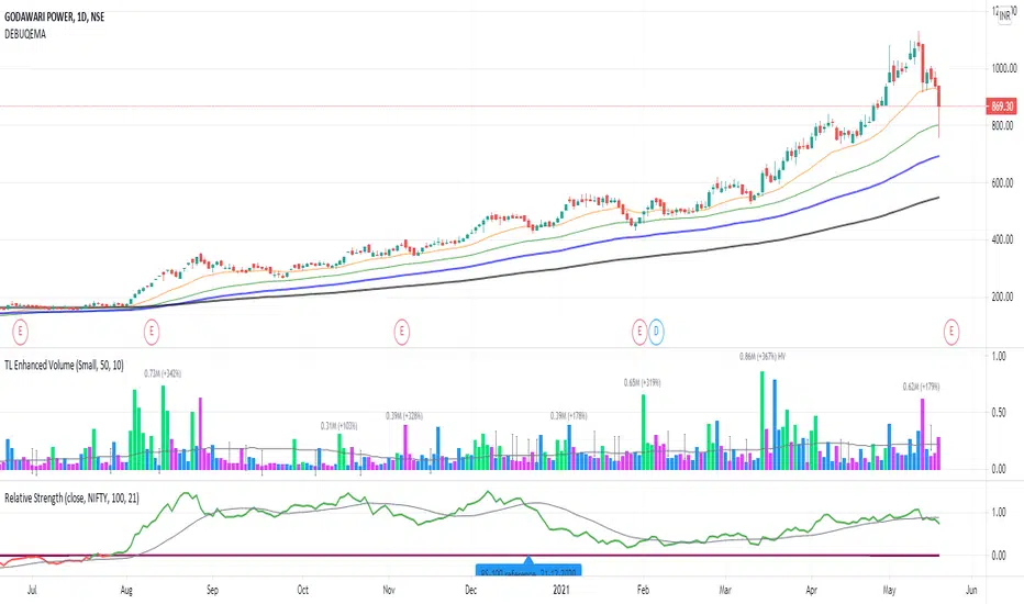 A simple script to combine 4 ema's (21,55,100,200) together.