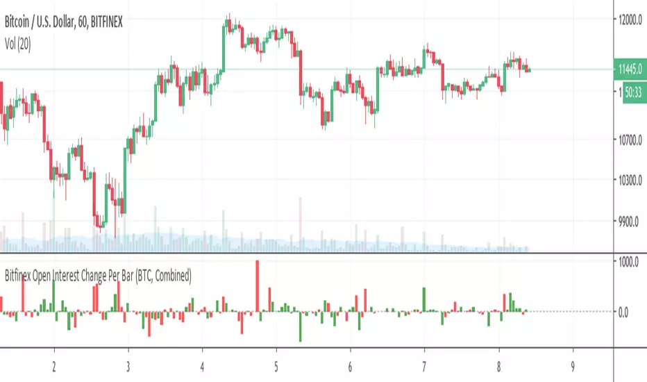 The script shows changes in Bitfinex open interest from the previous candle.