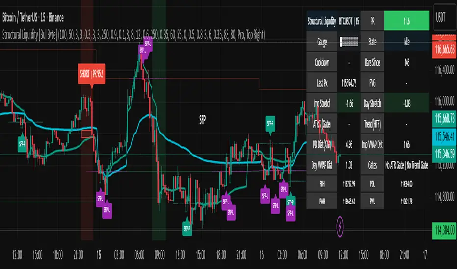 Structural Liquidity Signals (SFP, FVG, BOS, AVWAP) [BullByte]
