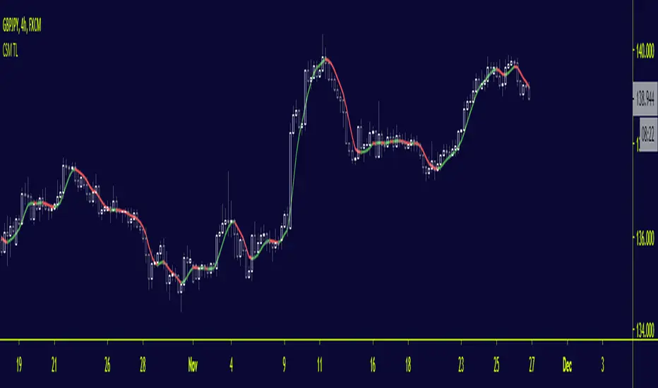 This indicator highlights what I call the trigger line, which is a special non-lagging moving average that will act as the potential signal to enter into positions as part of the CSM (Currency Strength Micro-Mechanics) strategy.