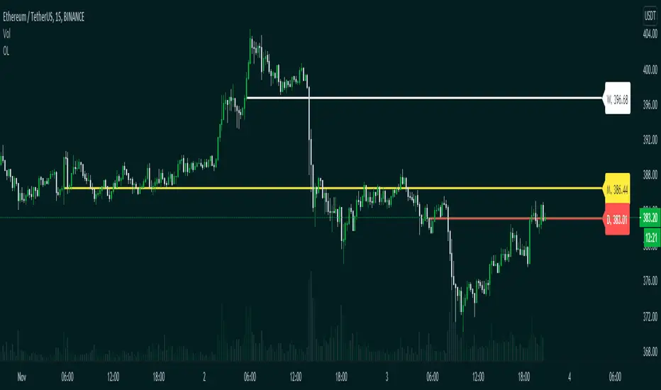 Opening Levels is an indicator to draw lines on the opening prices of the current day, week, and month.