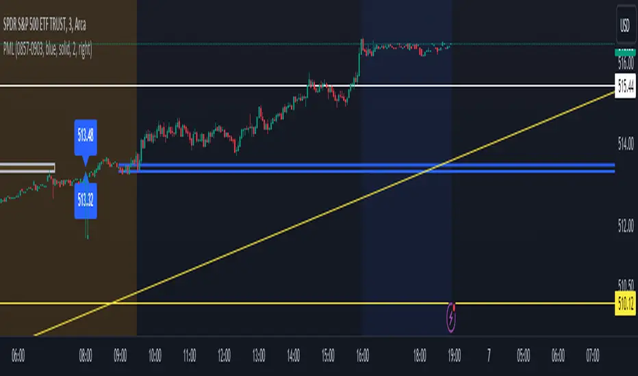 This indicator provides basic pre-market level information. You have the flexibility to select your preferred time range for the lines and labels.