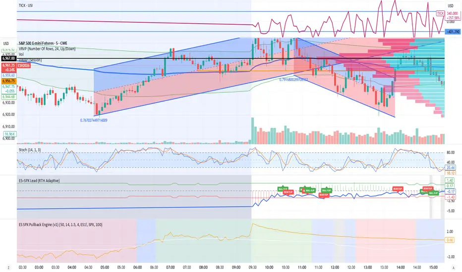this script is intended to provide clear long or short pullback entries, while /ES is leading the index