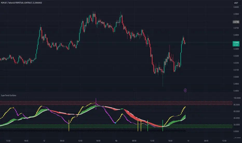 The SuperTrend Oscillator is a versatile and powerful indicator designed to assist traders in identifying market trends, reversals, and momentum. This indicator leverages complex calculations and smoothing techniques to provide actionable signals. The SuperTrend Oscillator can be used for intraday, swing, and positional trading, making it suitable for various market conditions and trading styles.