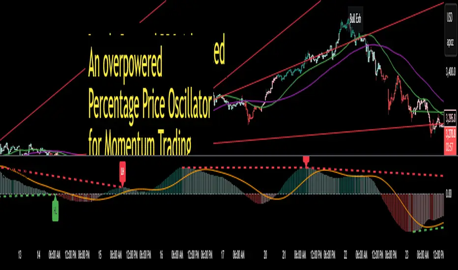 This tool is based on a dual-moving-average PPO oscillator structure (Percentage Price Oscillator) enhanced by:
