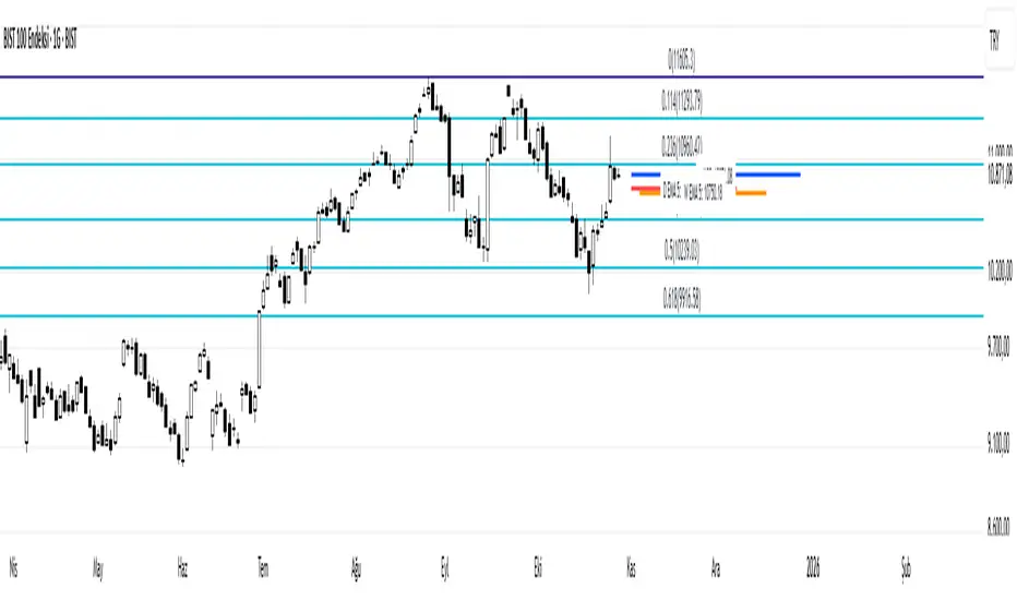 Customization: Users can toggle the visibility of the Fibonacci lines, adjust their thickness and colors (e.g., different colors for levels between 0-1 and for levels above 1), and choose whether the price labels appear on the right or left side of the chart.