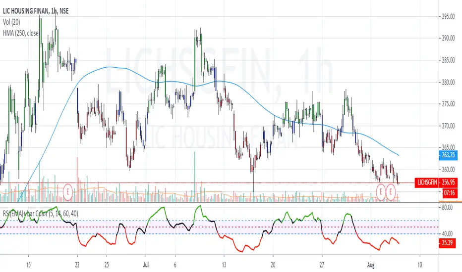 Candle Color BLUE ----> side ways market (RSI value is between upper band and lower band values)