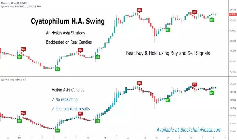 The Heikin Ashi candles are very usefull. This strategy is built upon H.A. candles but is used on normal candles, because H.A. candles price are an average of real candles and we want to know the real price. I did the trick by recalculating the H.A. open, high, low and close with the original formula based on the real candles's ohlc. This allows me to use the strategy tester and backtest with real results.