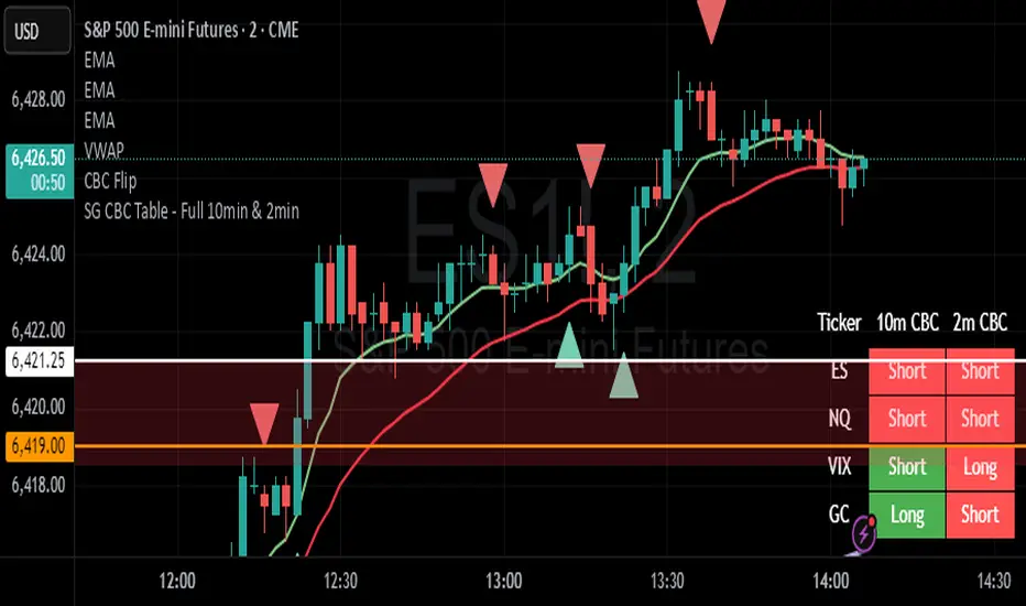 Based on SG CBC Table has 10 min and 2 min CBC status and GC. Also customizable table colors of the background can be changed or made transparent. Indicator Updates every 10 minutes on a 10 minute chart and every 2 minutes on a 2 minute chart