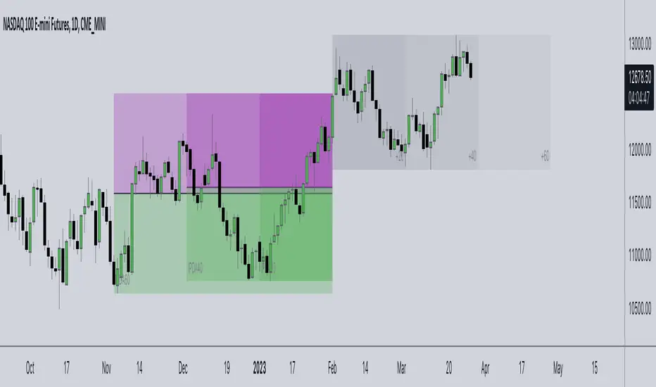 This script is an anchored variation of my "ICT IPDA Look Back" script. Similarly, it calculates ICT's daily IPDA look back time intervals and their respective discount / equilibrium / premium; however, it also applies the Forward Cast IPDA daily ranges.