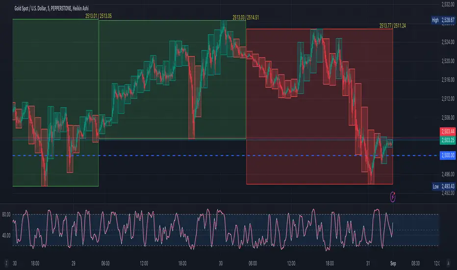 2. Box colors change based on whether the close is higher (bullish) or lower (bearish) than the open.