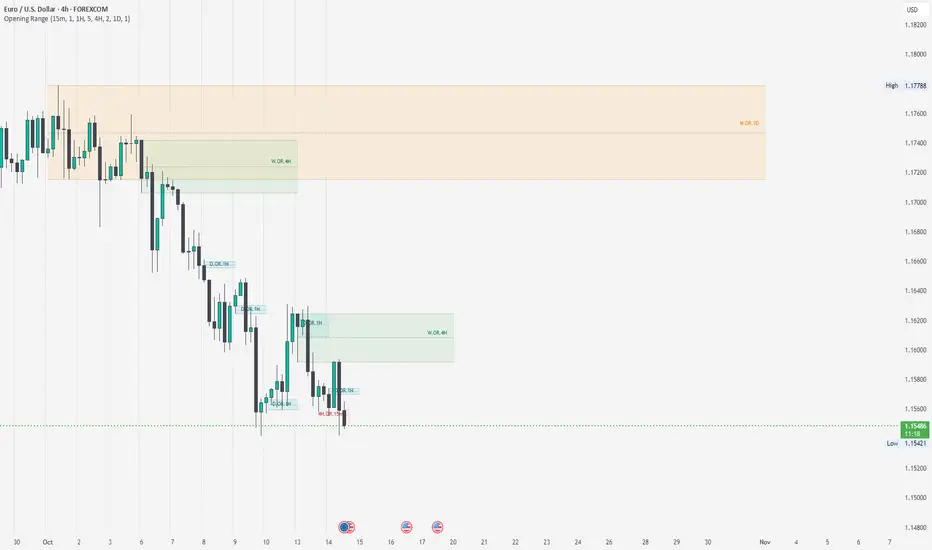The Opening Range indicator highlights the high, low, and midpoint of the first hour (1H) of each trading day and the first four hours (4H) of each trading week. These ranges are displayed as rectangles, providing key support, resistance, and breakout levels.