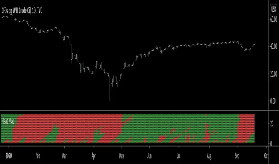 This heat map I created looks back over 30 periods and displays 2 colors: green or red.
