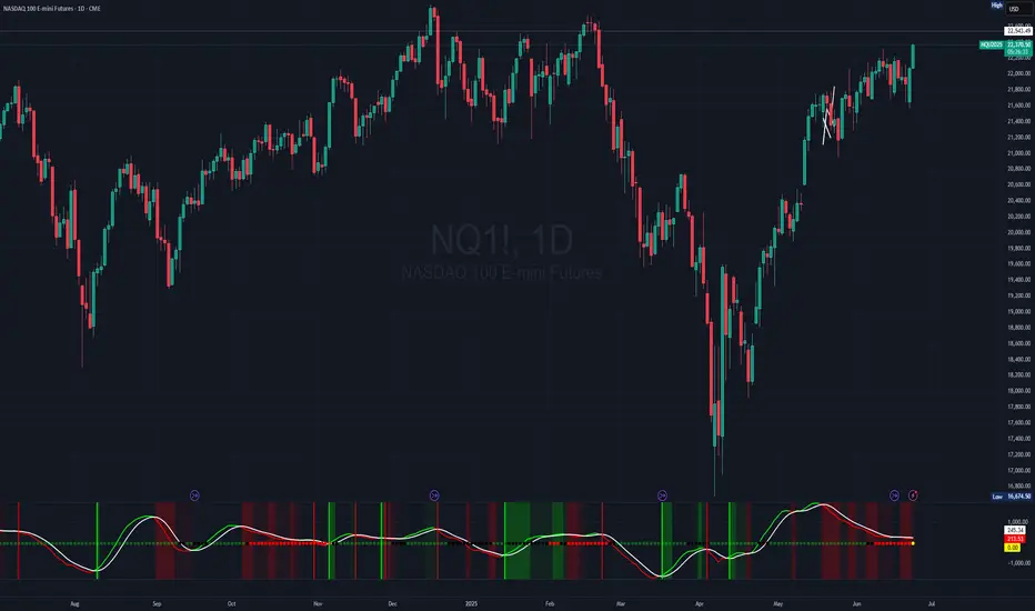 Example: A bullish confluence (green background) with positive ROC indicates a high-probability long setup.