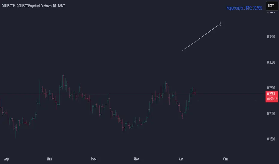 This indicator calculates and displays the correlation between the current chart’s asset and Bitcoin (BTCUSDT) over a selected period. The correlation is shown as a percentage in a compact table on the chart.