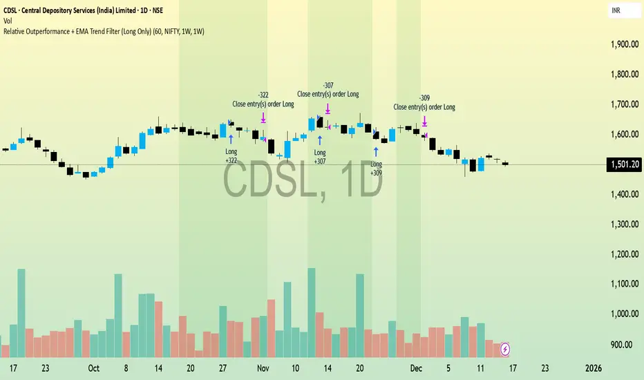 Relative Outperformance + EMA Trend Filter (Long Only)