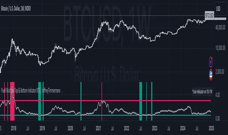 Puell Multiple Top & Bottom Indicator for BTCThe Puell Multiple is a key metric for Bitcoin, calculated as the ratio of daily coin issuance (in USD) to its 365-day moving average. It provides insight into miner profitability and its influence on market cycles.