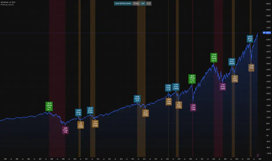 This script show visually with labels all the BULL & BEAR Market since 1929 with intermediary corrections.