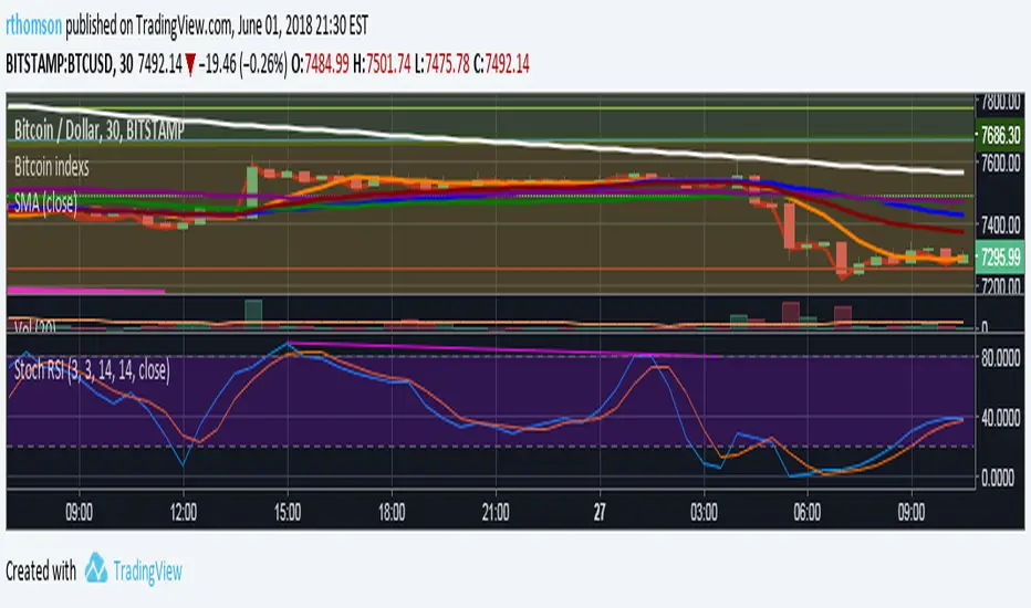 Multiple SMA's, 99, 25, 7 (same as on Binance), 50, 200, plus the 20 EMA (same as used on Binance again).