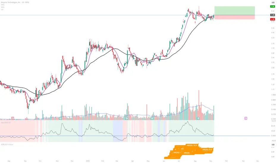 Displays the 20-day Average Daily Range (ADR) as a % of price, following the method popularized by Kristjan Qullamägi (Qullamaggie). The ADR value updates dynamically and is printed directly on the chart for quick reference.