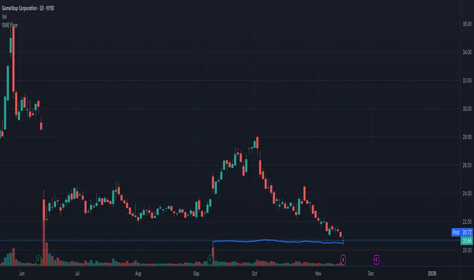 This indicator plots the actual cash and equivalents floor of GME